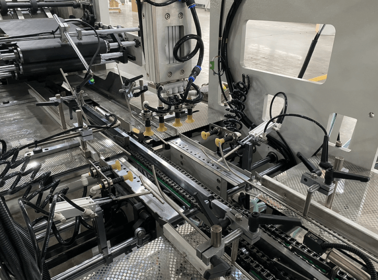 Piezas de alimentación de tarjeta inferior, estación doble | Sistema de inserción de tarjeta inferior | Adopta el diseño de clip de paletas para el sellado de fondo, que es más estable con un sistema de pegado de fondo automático. | Sistema de recolección con función de conteo. |