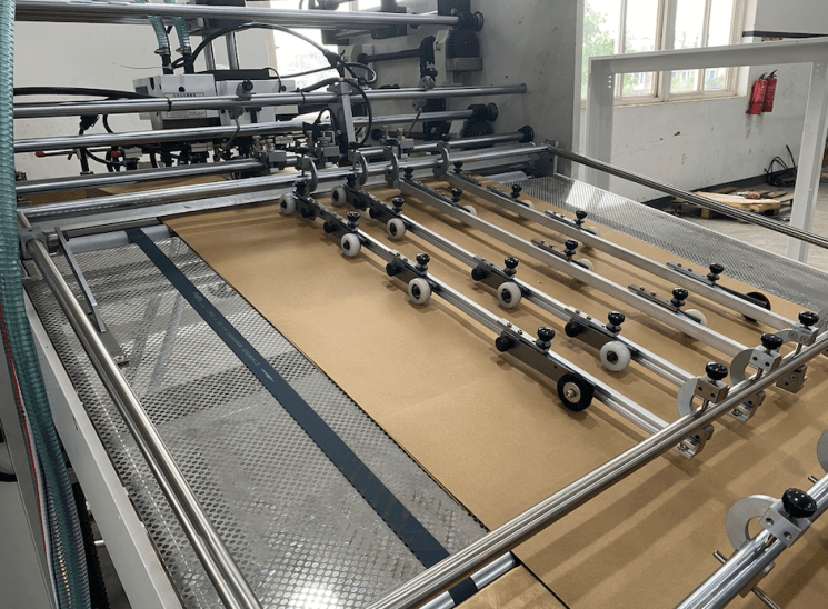 Esta máquina funciona con papel Kraft, papel de arte y papel laminado con recubrimiento PP. Maneja el grosor del papel de 100 g/m² a 230 g/m².