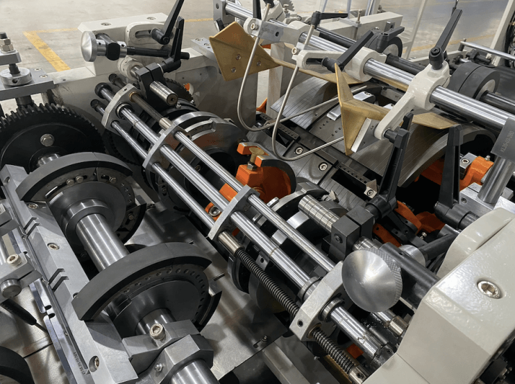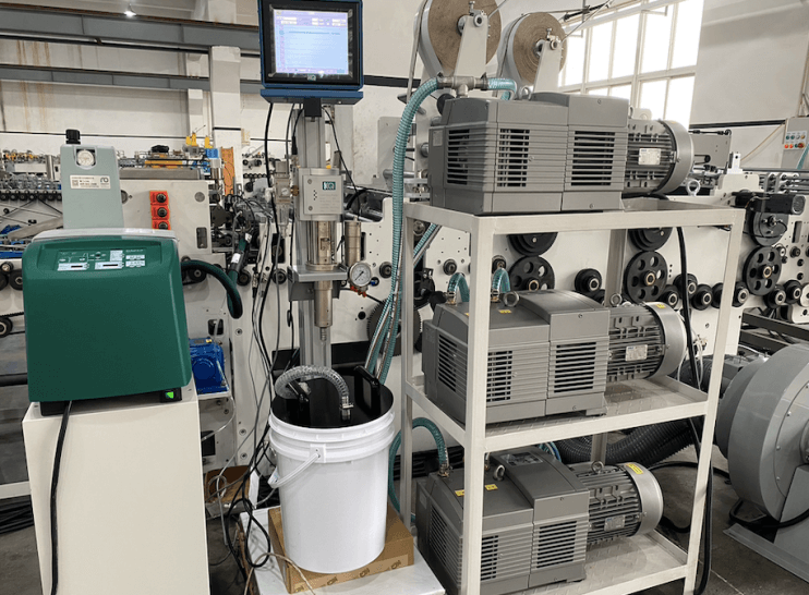 Adopta equipos de pegamento caliente de la marca Robatech con controlador de pegamento frío automático Keqi para que el lateral selle una mejor calidad. | Sistema de lubricación automática para las piezas de engranajes. | ||