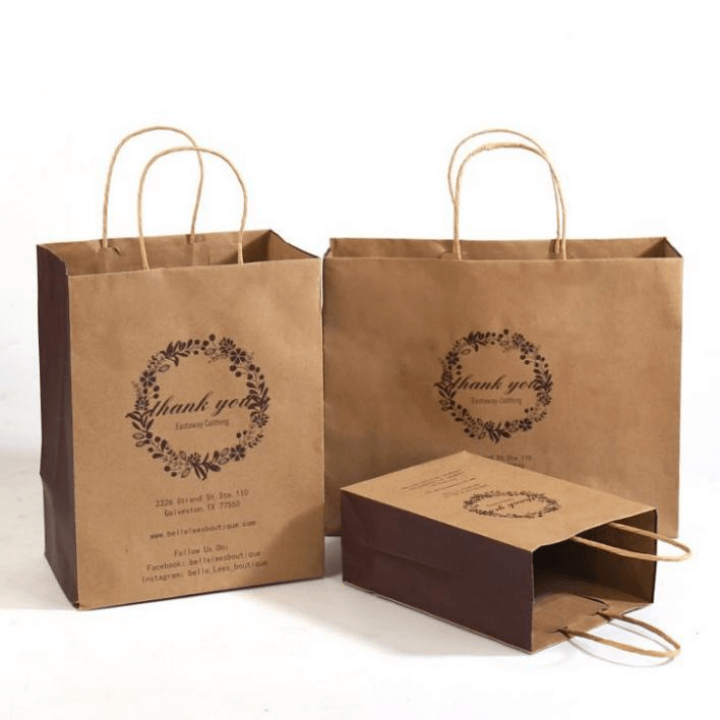 Minorista local : produce bolsas de compras para panaderías, tiendas de regalos y tiendas pequeñas, con impresión flexo opcional (3 colores, 150 ppi) para logotipos personalizados.