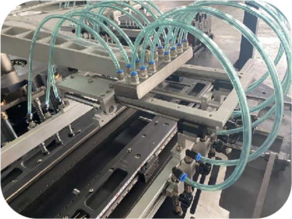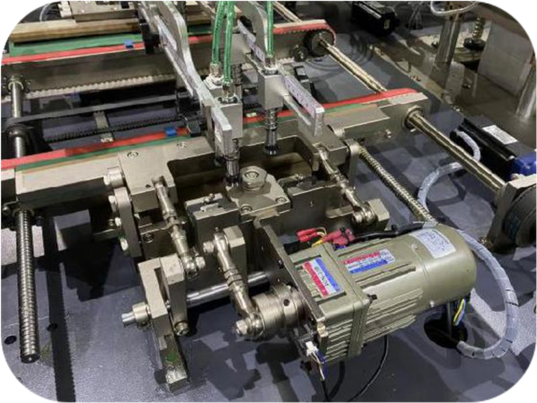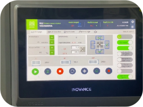 Dispositivo de succión de placa El ancho de la caja se ajusta por el tornillo de bola, y la longitud de la caja se ajusta mediante la ranura deslizante, más fácil, precisa y conveniente. | Mecanismo de envoltura lateral Adopta Servo Motor System para ajustar automáticamente la longitud y el ancho con la forma oblicua de envoltura de presión, que está más cerca. | Dispositivo de puerta de seguridad Cuando se abra la puerta de la máquina, tendrá alarma en la pantalla táctil. | Pantalla táctil y monitor remoto Monitoreo de fecha remota y detección de fallas. Acceso disponible al sistema ERP de fábrica, datos de producción, etc. Fácil para el servicio de venta de ventas. |
